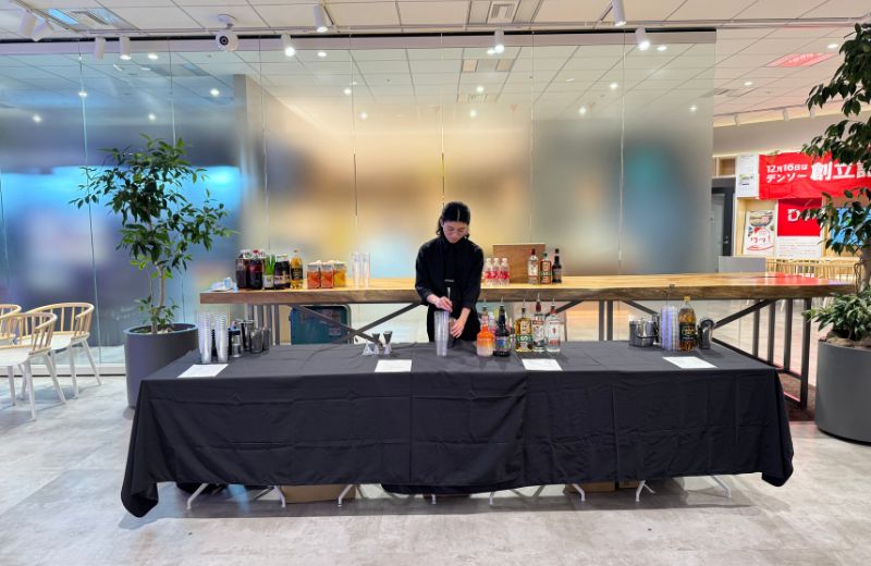 今回は、株式会社デンソーITラボラトリ様主催の講演会後の懇親会にて、ドリンクサービスを担当させていただきました。本イベントはリクルートを目的とした社内イベントとして開催され、参加者の多くが学生の方という構成でした。