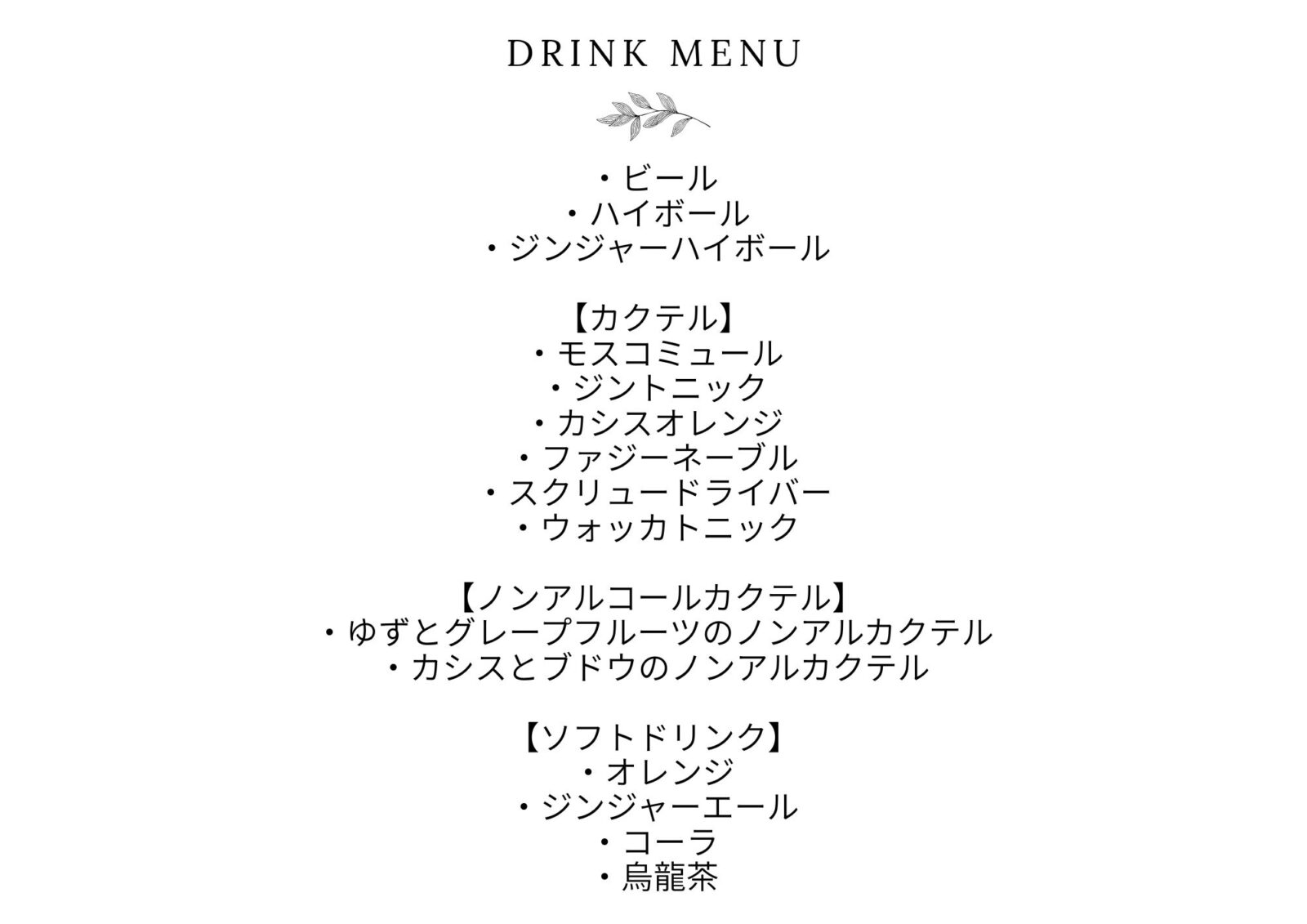 当日のドリンクメニュー